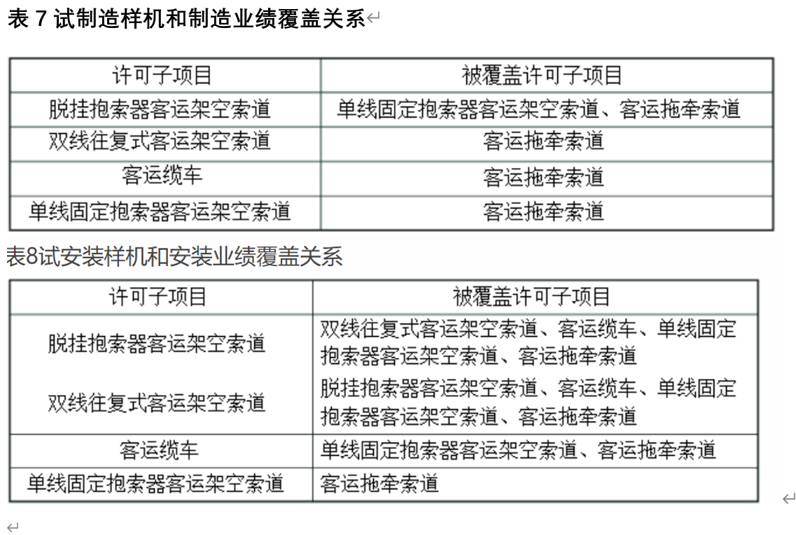 (1)取得客運索道制造許可的單位,應當在其持證周期內制造并交付使用相應許可子項目的產(chǎn)品至少各 1 條;無(wú)相應業(yè)績(jì)的,申請換證時(shí),應當按照本文第7條的要求進(jìn)行試制造;申請"自我聲明承諾換證"的,應當在其持證周期內制造并交付使用相應許可子項目的產(chǎn)品至少各4條;