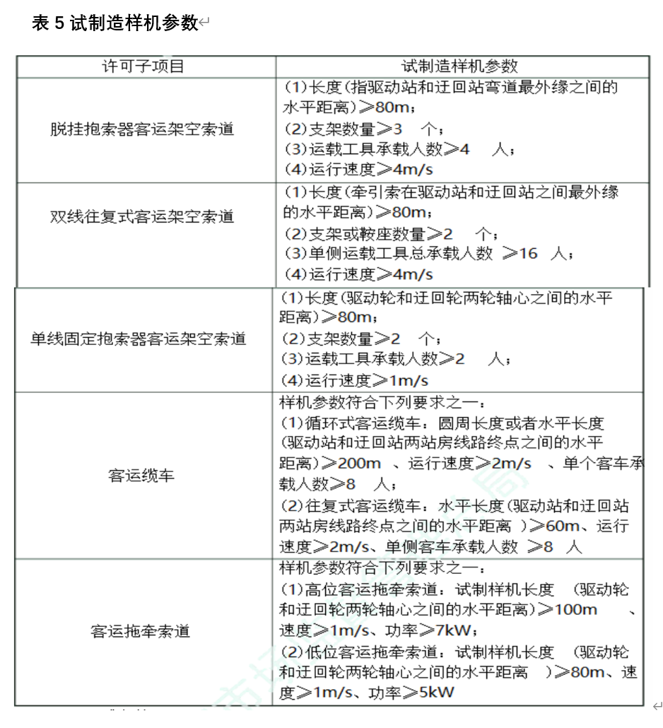 申請客運索道制造(含安裝、修理、改造)許可的單位,應當試制造所申請相應許可子項目的樣機各 1 臺。