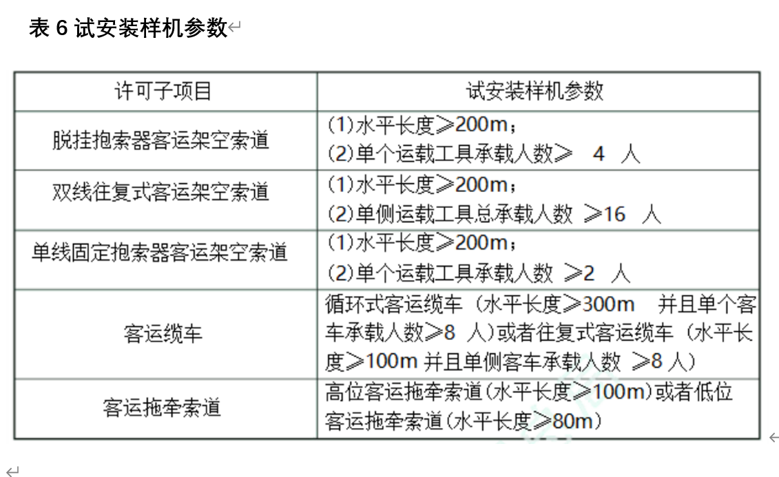 申請客運索道安裝(含修理)許可的單位,應當試安裝所申請相應許可子項目的樣機各 1 臺。